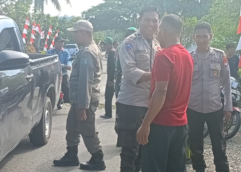 Beruntung aparat kepolisian dibantu TNI yang berjaga di sana mengatur warga berdatangan dan kendaraan melintas sehingga tidak terjadi kemacetan. Camat Bambalamotu terlihat di lokasi pemantau Pilkades.
