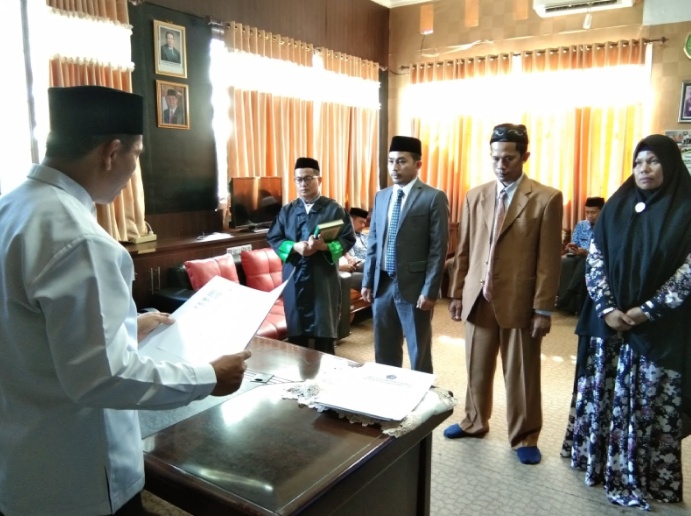 Pengambilan sumpah jabatannya pelantikan ini berlansung di Ruang Kerja Kepala Kantor Kemenag Matra Kabupaten Pasangayu Jum’at (17/05/2019) yang disaksikan oleh Rohaniawan, Para Saksi dan para undangan yang hadir.