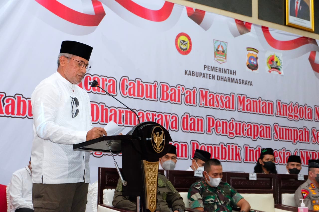 Dharmasraya, 50detik.com— Ada 391 warga yang sebelumnya tergabung dalam NII (Negara Islam Indonesia), melakukan cabut bai’at untuk kembali ke Negara Kesatuan Republik Indonesia (NKRI).