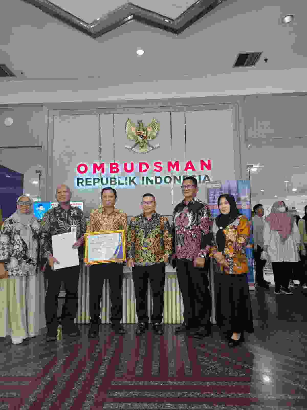 Penghargaan tersebut diserahkan langsung oleh Ketua Ombudsman RI Mokhamad Najih,SH,M.Hum,Phd
