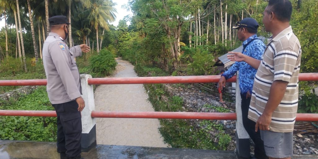 Luwuk, 50detik.com–  Personel Polsek Pagimana  memantau lokasi banjir yang menghantam dua desa di Kecamatan Pagimana Kabupaten Banggai, Selasa (17/5/2022).