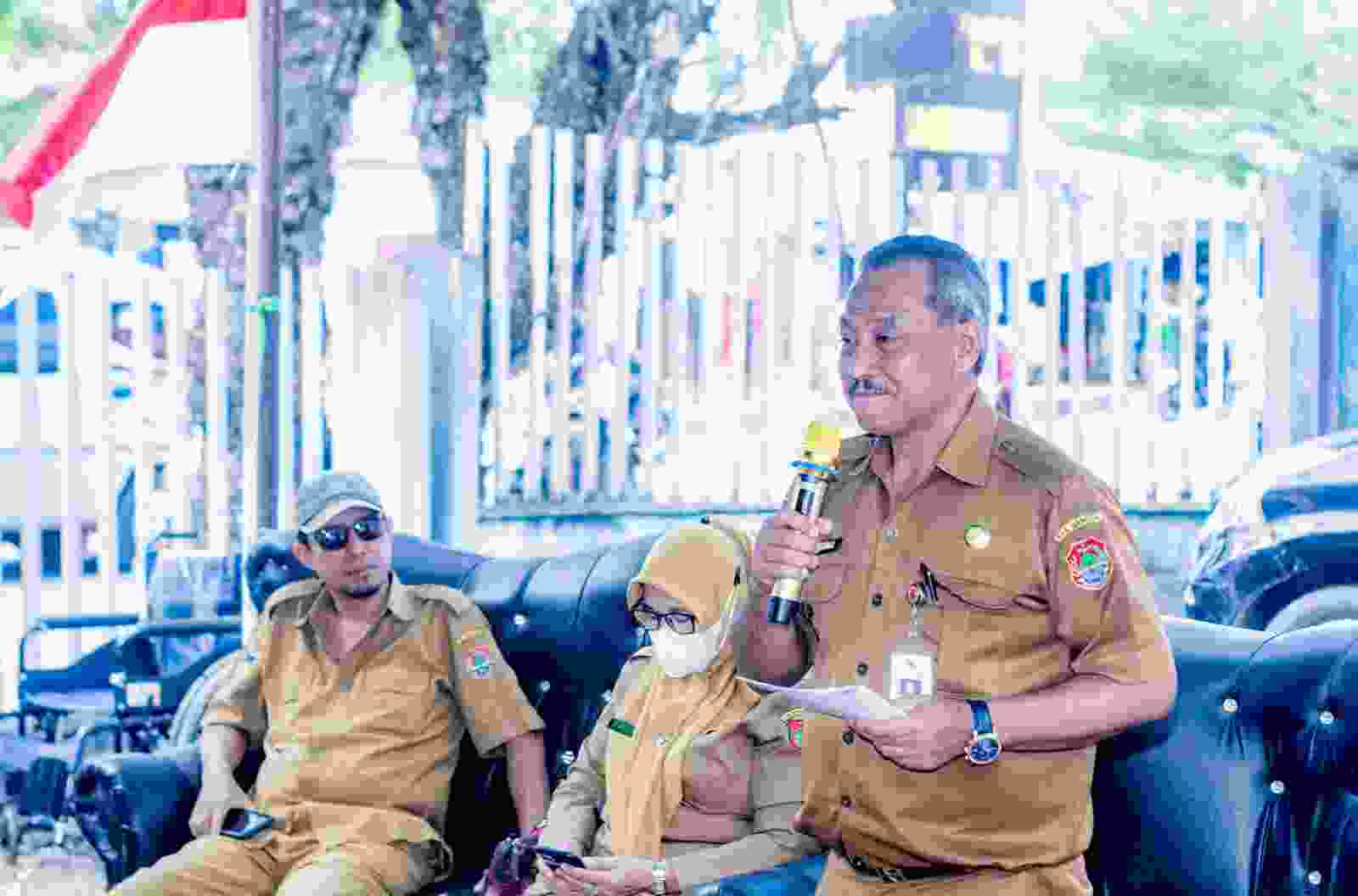 Plt. Asisten 2 Setda Kabupaten Banggai Mujiono, S.H., M.H saat menghadiri kegiatan pemeriksaan kesehatan, pembagian beras dan uang tunai kepada mustahik, lansia, dan dhuafa yang dilaksanakan oleh Baznas Kabupaten Banggai. Kegiatan tersebut dilaksanakan di Kantor Baznas Luwuk, pada Senin (22/9/2025).