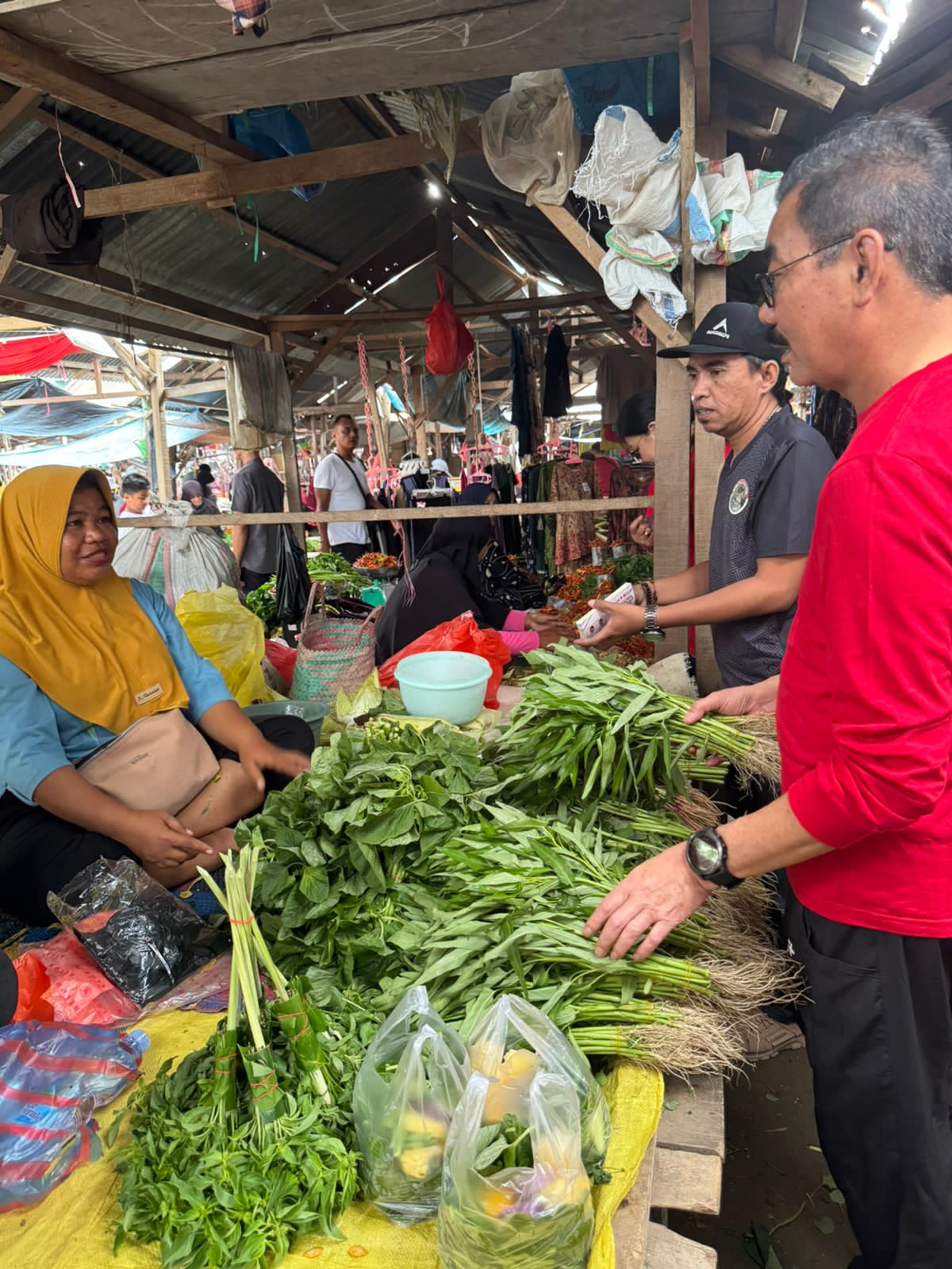 Kedatangan Sulaiman Agusto bersama istri disambut pedagang hingga pengunjung pasar. Banyak yang meminta mengabadikan foto bersama dan bersalaman sampai sorakan dimana-dimana terdengar, Sangganipa Menang.