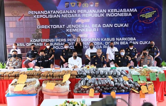 Jakarta, 50detik.com–Bareskrim Polri bersama Polda Riau, Polda Aceh, dan Direktorat Jenderal Bea Cukai berhasil mengungkap empat kasus peredaran narkoba di sejumlah wilayah Indonesia. Total barang bukti yang disita sebanyak 121 kilogram ganja dan 238 kilogram sabu.