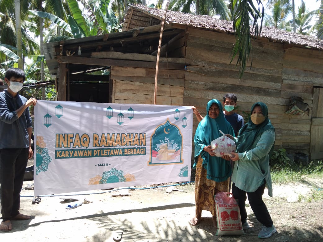 Admnistratur (ADM) PT Letawa, Rian Rizaldi mengatakan, di bulan penuh berkah ini, kami manejemen PT Letawa salurkan santunan infaq Ramadhan untuk tahun ini diberikan kepada 30 kepala keluarga (KK) yang membutuhkan uluran tangan.