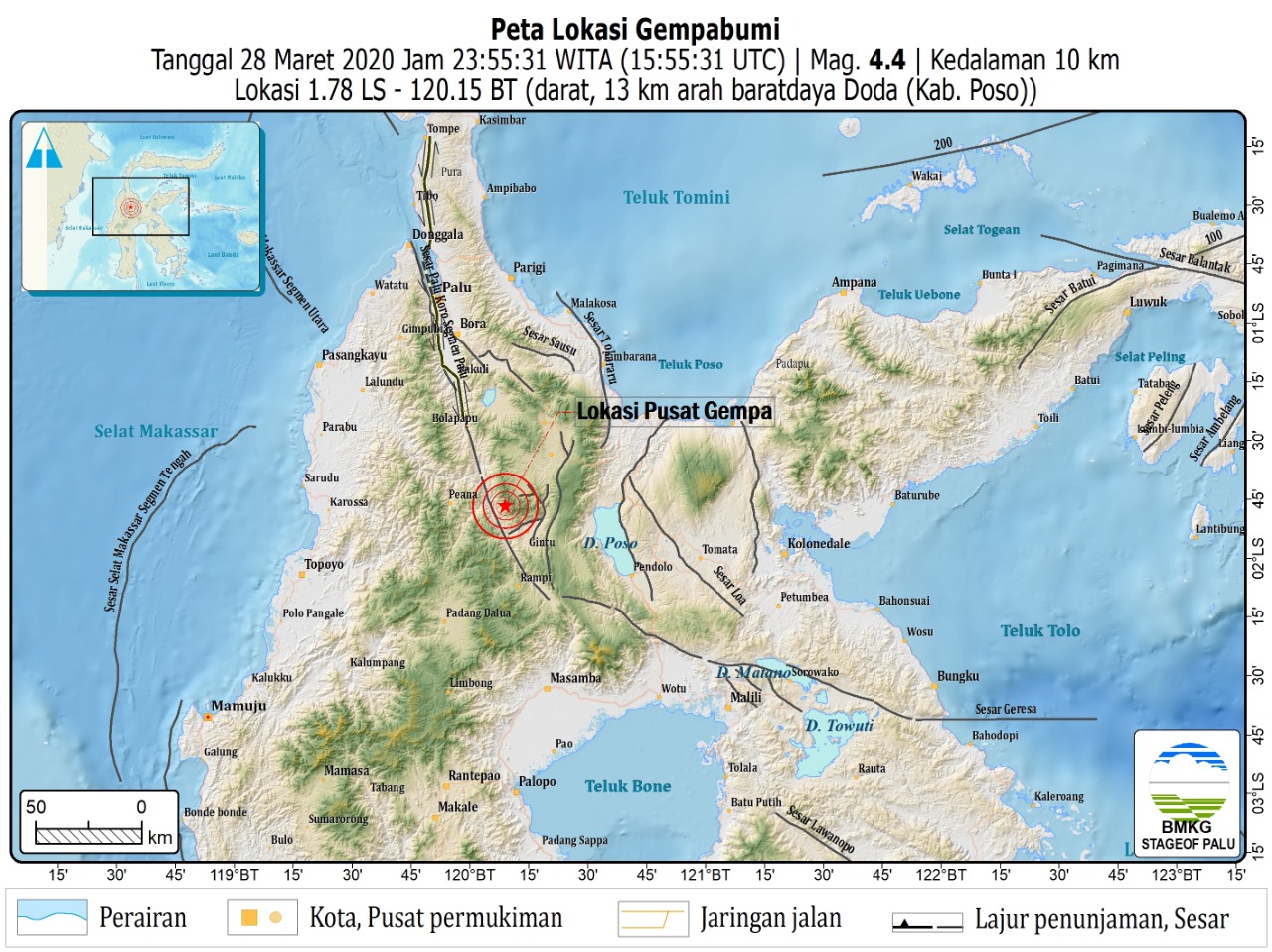 Palu, 50detik.com-Gempa kembali menggoncang Sigi dan sekitarnya. Gempa tersebut terjadi, Sabtu 28 Maret 2020 sekitar pukul 22:43:17 WIB.