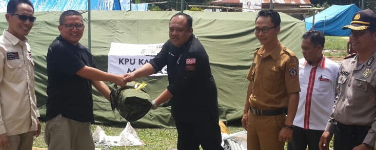 Untuk membantu KPU Mamasa tetap dapat bekerja melanjutkan tahapan pemilu, KPU RI mengirim bantuan berupa dua tenda besar.