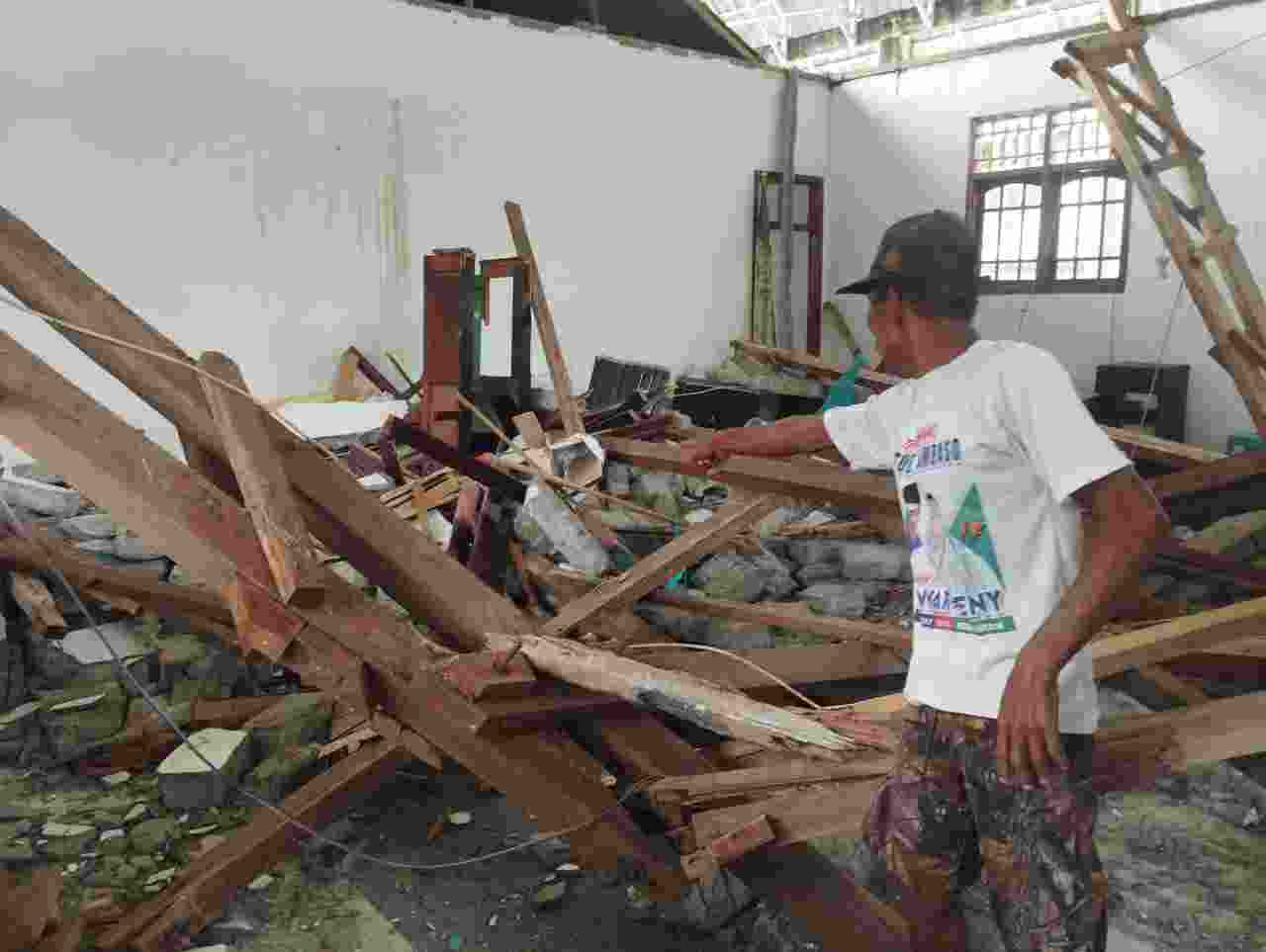 Dari pantauan wartawan 50detik.com di Tempat Kejadian Perkara (TKP). Bangunan gereja yang sedang di rehab tersebut, rusak berat, bahkan mimbar kotbah pun telah hancur akibat tertimpa bahan bangunan lain.
