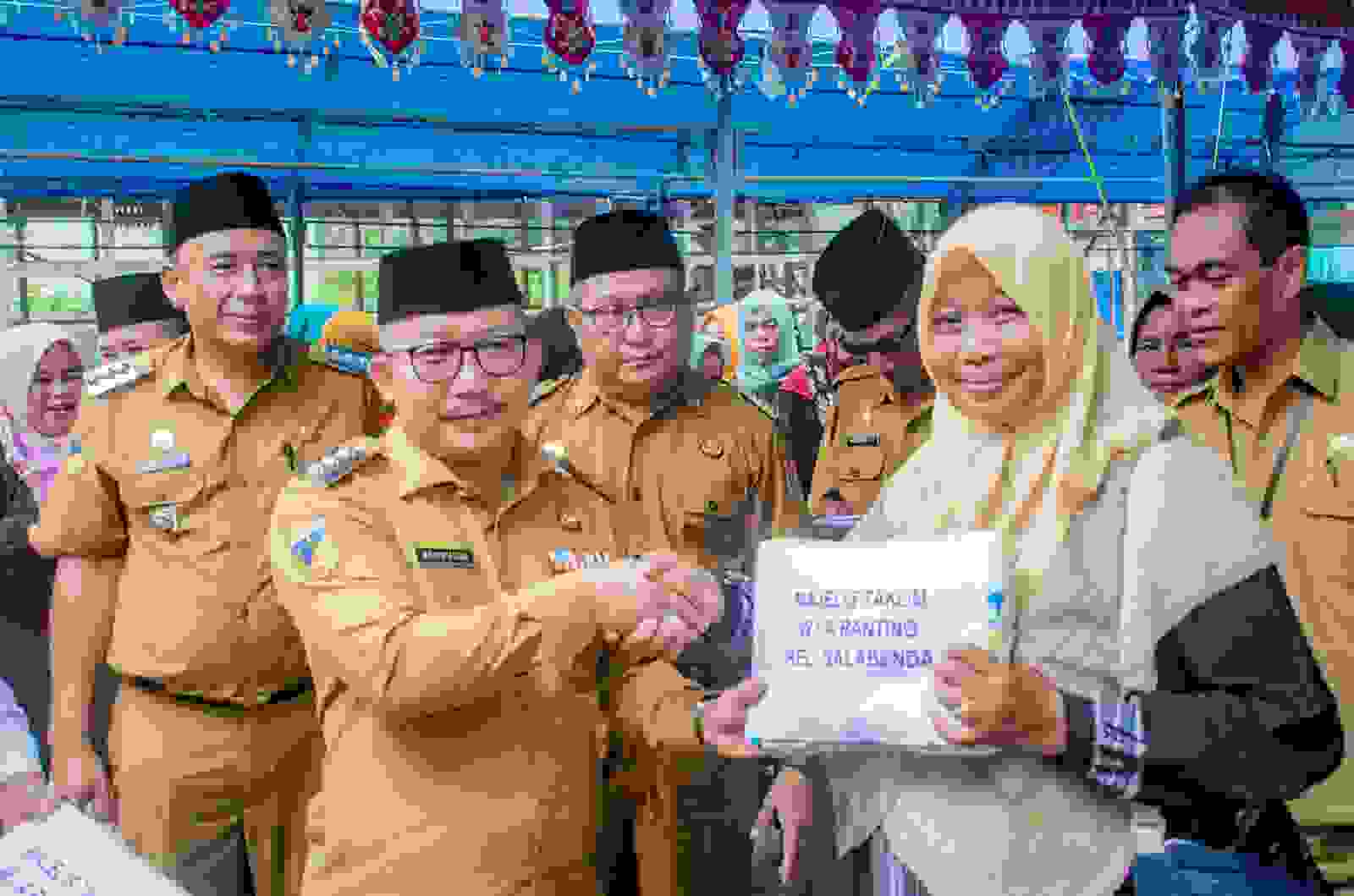 Pasca menyampaikan sambutanya, Bupati Amirudin memberikan santunan secara simbolis kepada 150 yatim-piatu dan bingkisan kepada Majelis Ta’lim di 3 kecamatan yakni Simpang Raya, Bunta dan Nuhon.