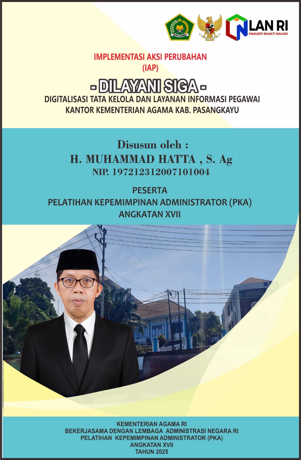 Pasangkayu,50detik.com – Kepala Kantor Kementerian Agama Kabupaten Pasangkayu, H. Muhammad Hatta, S.Ag, meluncurkan program inovatif bertajuk “DILAYANI SIGA” (Digitalisasi Tata Kelola dan Layanan Informasi Pegawai), sebagai bagian dari Implementasi Aksi Perubahan (IAP) dalam Pelatihan Kepemimpinan Administrator (PKA) Angkatan XVII Tahun 2025.