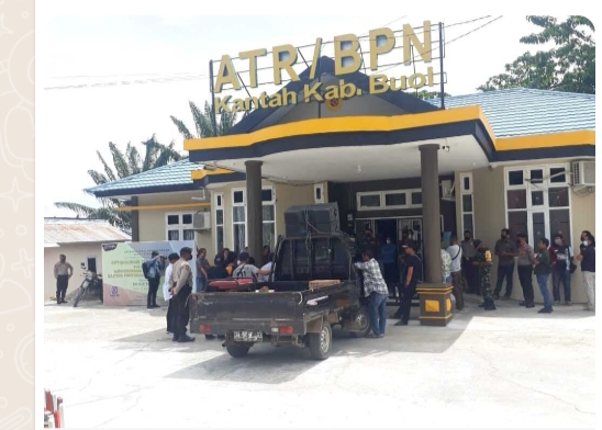 BUOL Aksi demontrasi kembali terjadi di kabupaten buol. Kamis, 16 Desember 2021, puluhan warga yang mengatasnamakan Front Rakyat Buol Bersatu ( FRBB ) menyambangi Kantor ATR/BPN Buol, dan langsung diterima Kepala ATR/BPN Buol Bambang Yudho Setyo,MAP beserta sejumlah jajaranya.