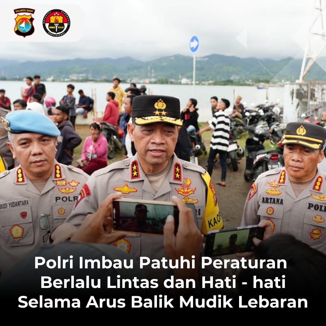 Mamuju,50detik.com- Kapolda Sulawesi Barat (Sulbar) Irjen Pol Adang Ginanjar menghimbau masyarakat untuk memprioritaskan keselamatan dan mematuhi peraturan lalu lintas selama periode arus balik mudik lebaran.