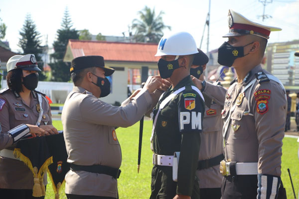 Apel ditandai dengan pemeriksaan pasukan dan penyematan pita tanda operasi oleh Kapolda Sulut kepada perwakilan personel TNI, Polri, Dinas Perhubungan serta Sat Pol PP.