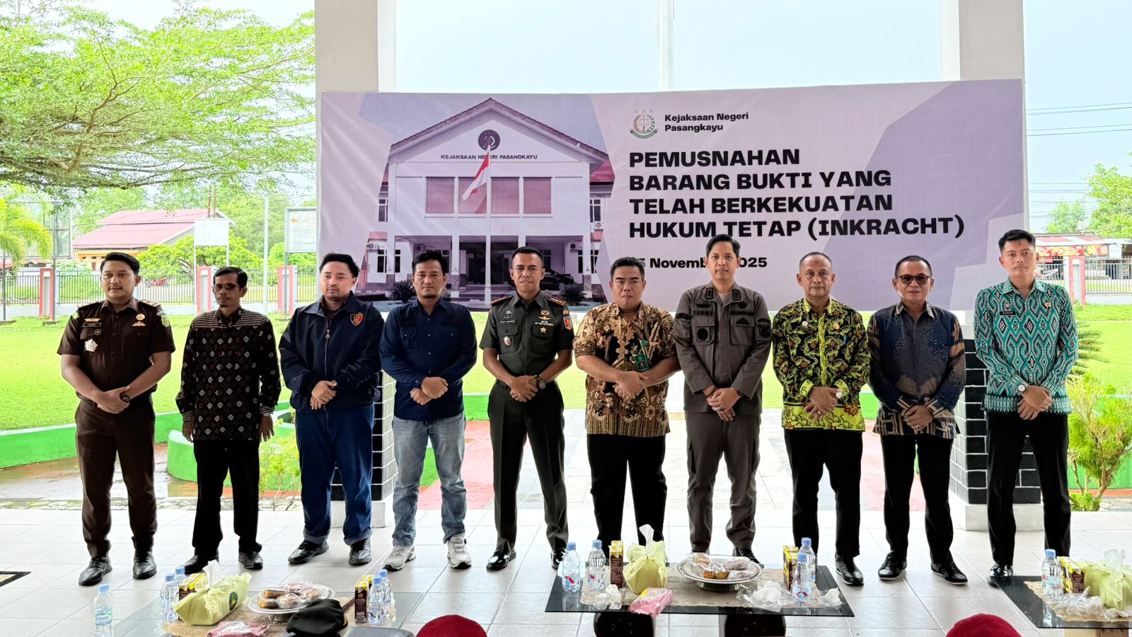 Kegiatan pemusnahan dipimpin langsung oleh Kepala Kejaksaan Negeri Pasangkayu, Tedhy Widodo, S.H., M.H., dan dihadiri oleh sejumlah unsur Forkopimda, antara lain Dandim 1427/Pasangkayu Letkol Czy Doni Siswanto, Kepala Pengadilan Negeri Pasangkayu Yunianto Agung N., S.H., serta Kasat Narkoba Polres Pasangkayu Haerul Ahmad, S.Pd.