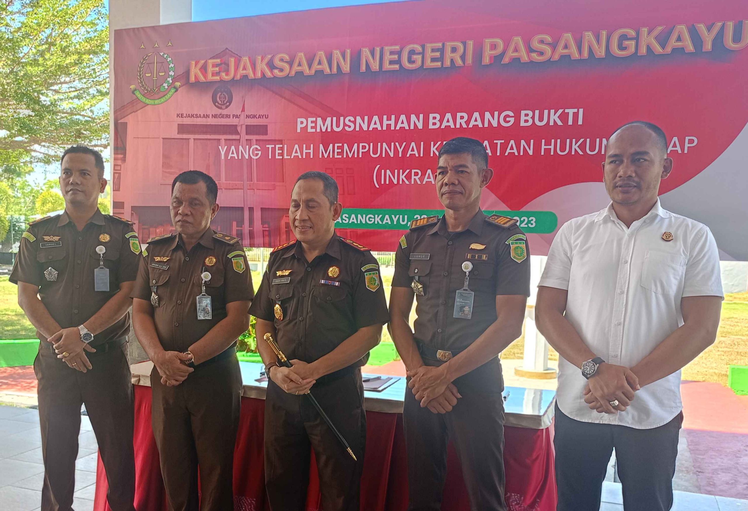 Pasangkayu 50detik.com- Kepala Kejaksaan Negeri (Kajari) Kabupaten Pasangkayu, Provinsi Sulawesi Barat (Sulbar), Dedy Frits Rajagukguk,SH,MH, adakan pemusnahan Barang Bukti (BB) yang telah memiliki kekuatan hukum tetap (Eintracht) di kantor Kejaksaan Negeri (Kejari) Pasangkayu.