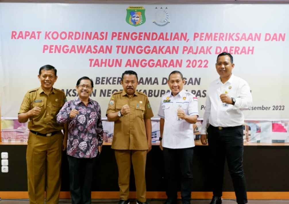 Pasangkayu 50detik.com- Hampir mencapai target, Badan Pendapatan Daerah (Bapeda) bekerjasama dengan Kejaksaan Negeri (Kejari) Pasangkayu laksanakan Rapat Koordinasi (Rakor) Pengendalian, Pemeriksaan dan Pengawasan Tunggakan Pajak (P3TP) Daerah Kabupaten Pasangkayu Tahun Anggaran (TA) 2022, Berlangsung di Ruang Meeting Pola Kantor Bupati Pasangkayu, Provinsi Sulawesi Barat (Sulbar), Senin(11/12/2023).