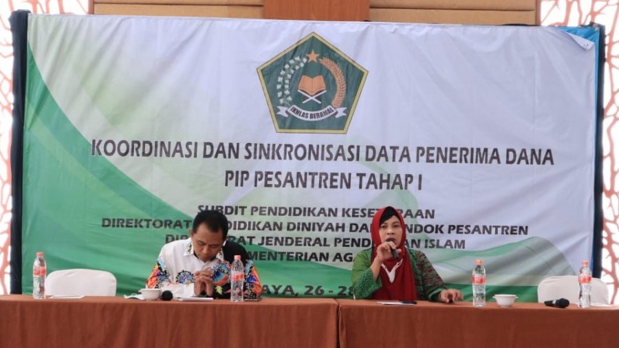 Surabaya, 50detik.com — Direktorat Pendidikan Diniyah dan Pondok Pesantren Kementerian Agama memvalidasi data santri penerima Program Indonesia Pintar (PIP). Validasi dikemas dalam kegiatan Koordinasi dan Sinkronisasi Data Penerima Dana Pesantren tahap I, khususnya PIP di lingkungan pondok pesantren.