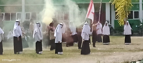 Usai upacara yang berlangsung di halaman Ponpes Al-Ikhlas, santri-santriwati menampilkan parade seni.