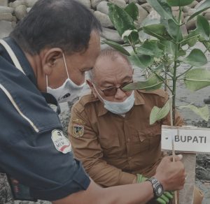 Bupati Buol H.Amirudin Rauf di Dampingi Sekretaris Panpel Bambang Sugito saat melakukan penanaman bibit mangrove