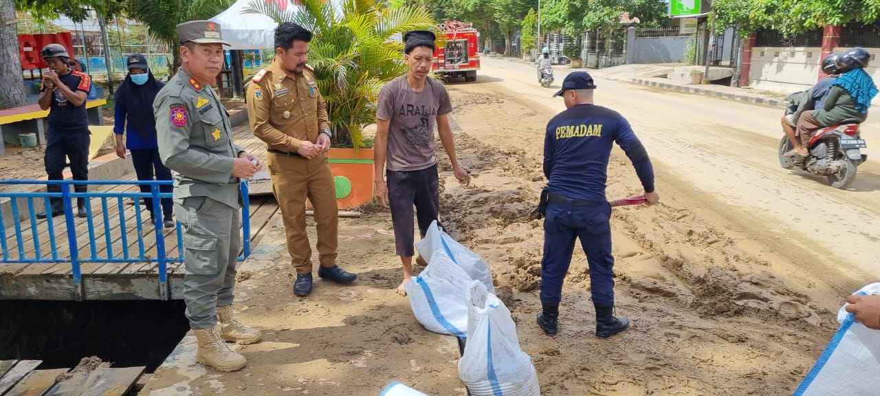 Sekretaris Daerah Kabupaten Tolitoli bapak Moh. Asrul Bantilan, S.Sos yg didampingi Kepala Satuan Polisi Pamong Praja bapak Samsuh M. Saleh S.Ag, M.Si langsung meninjau lokasi dan turut melakukan pembersihan lumpur dan sampah lainnya bersama para petugas Pemadam Kebakaran. Petugas Damkar juga melakukan penyemprotan untuk membersihkan lumpur dibeberapa titik fasilitas umum dan fasilitas pemerintah.
