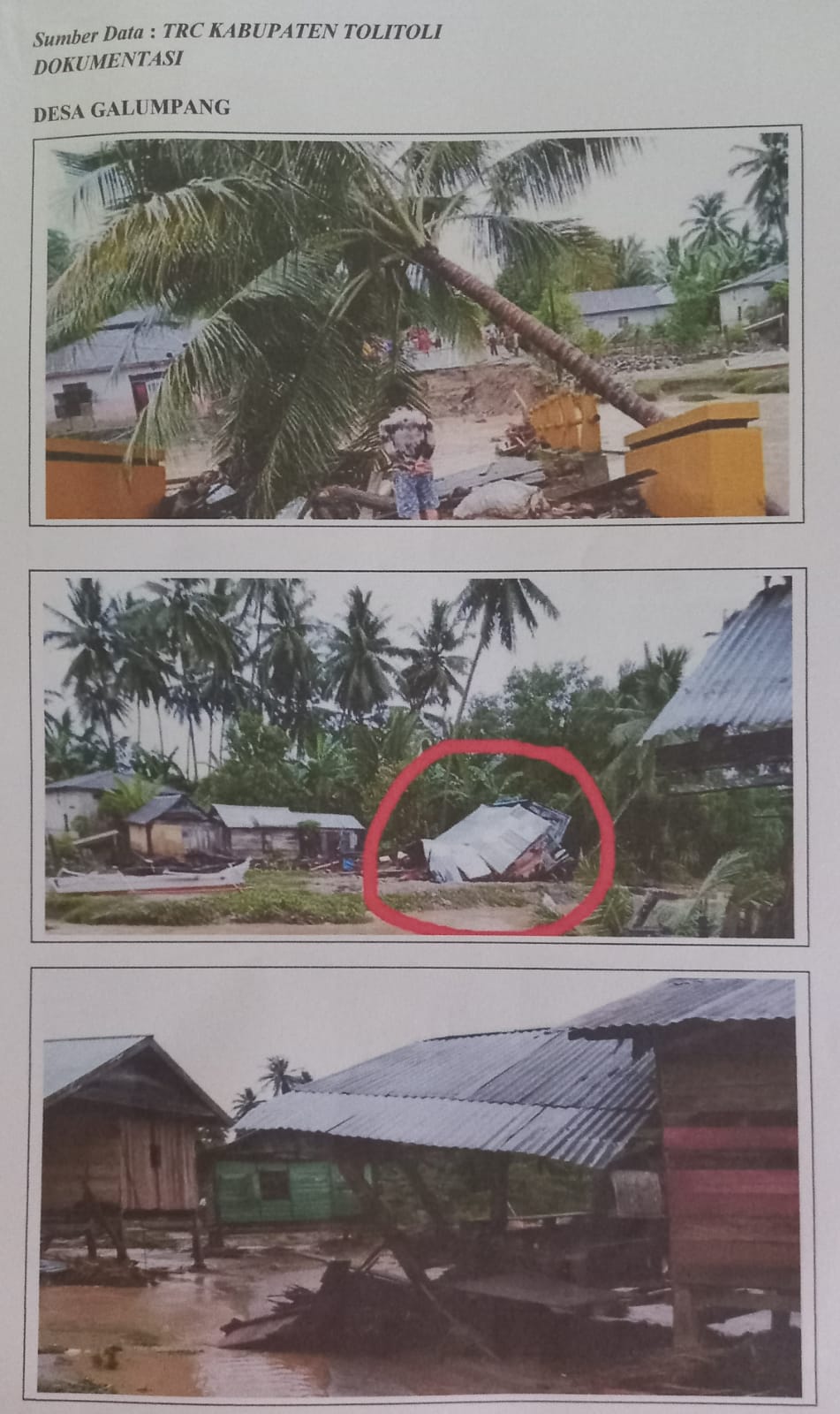 Putusnya 3 buah jembatan di jalan trans sulawesi sampai hari ini jalur yang menghubungkan Kabupaten tolitoli dengan Kabupaten Buol belum bisa dilewati kendaraan roda 4 sehingga untuk menyalurkan bantuan ke desa terparah desa Galumpang terpaksa menggunakan transportasi laut.