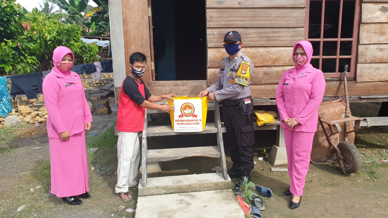 Pasangkayu,50detik.com- Polsek Bambalamotu Polres Mamuju Utara didampingi bhayangkari Ranting Bambalamotu membagikan paket sembako kepada Honorer Kesehatan dalam rangka Hari Bhayangkara Ke 74 tahun pada hari sabtu (20/6/2020) pagi.