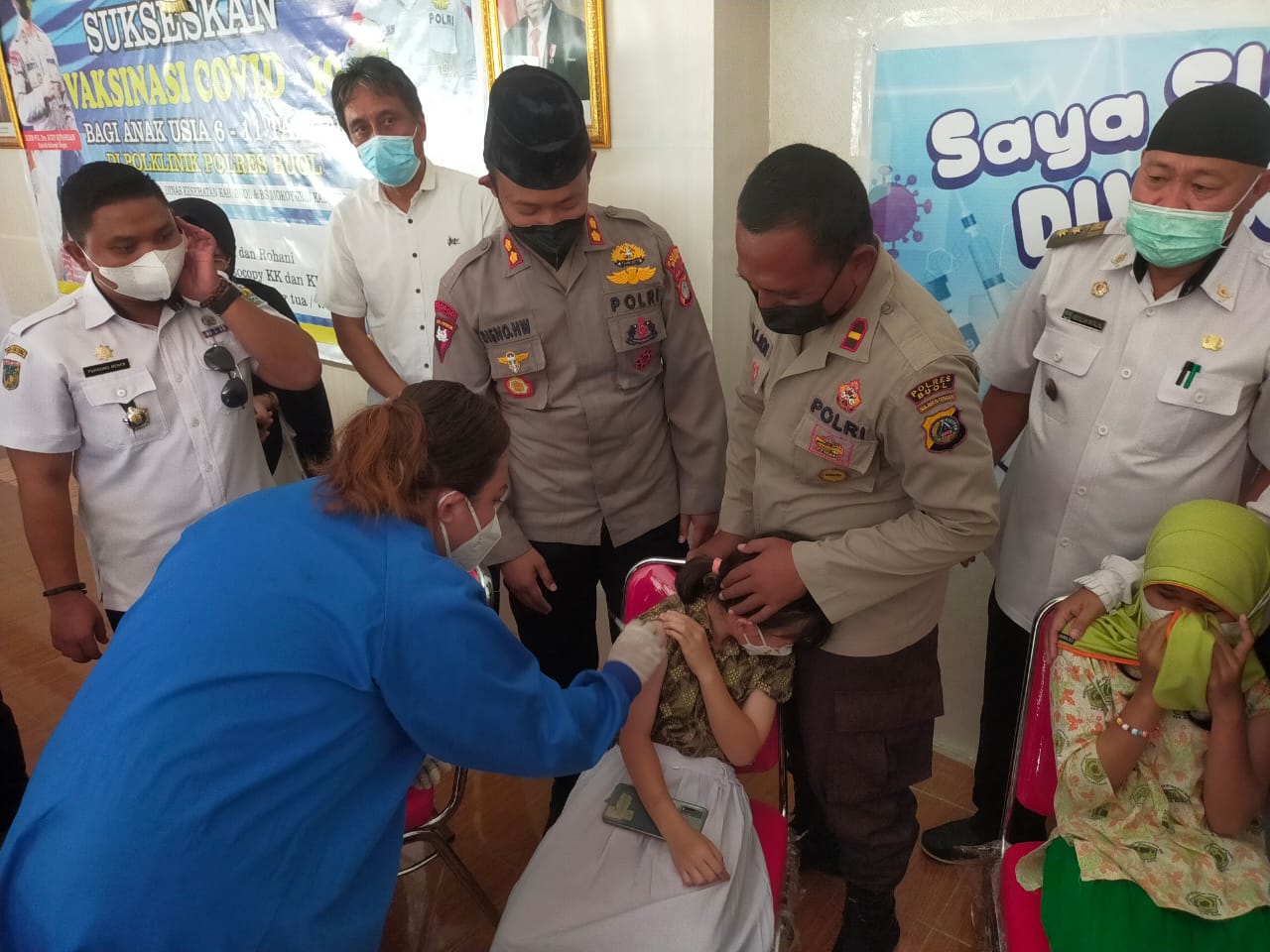 Buol,50Detik.Com. Pemerintah Kabupaten Buol meluncurkan vaksinasi anak usia 6-12 tahun bekerja sama dengan Polres buol yang dilaksanakan di pendopo polres Buol Keluruhan leok 2 Kecamatan Biau Rabu 26 Januari 2022 menjadi kecamatan pertama di Kabupaten Buol yang melaksanakan vaksinasi untuk anak usia tersebut.