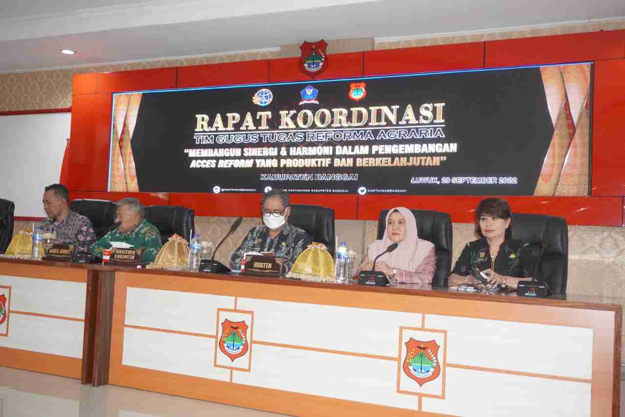 Hal tersebut disampaikan Wakil Bupati Banggai H. Furqanuddin pada kegiatan Rapat Koordinasi Tim Gugus Tugas Reforma Agraria Kabupaten Banggai tahun 2022, bertempat di ruang Rapat Umum Kantor Bupati Banggai, Kamis (29 September 2022).