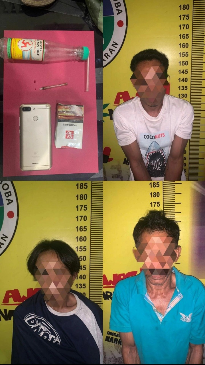Adapun barang bukti yang diamankan satu kotak rokok, seperangkat alat isap sabu, satu kaca pirek, dan satu bungkus plastik klip bening berisi kristal putih diduga sabu, Lalu dua unit Handphone (Hp) merek Samsung warna hitam, dua (2) lembar uang pecahan Rp100 ribu, dan satu (1) unit Hp merek Xiaomi Redmi 6 warna perak.