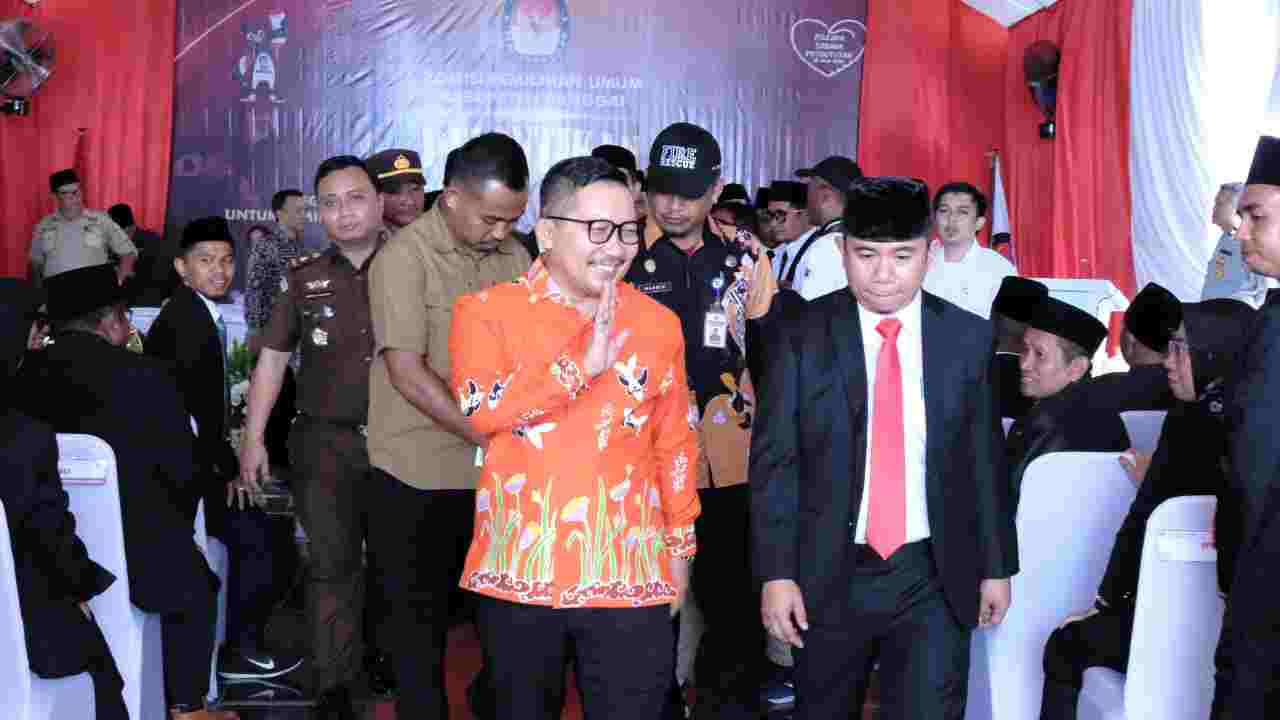 Bupati Banggai Ir. H. Amirudin, M.M saat menghadiri acara Pelantikan Anggota Panitia Pemilihan Kecamatan (PPK) Se-Kabupaten Banggai Tahun 2024, bertempat di Kantor KPU Kabupaten Banggai, Kamis (16/5/2024).