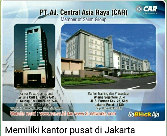 CAR–3i-Networks adalah program dari PT. AJ Central Asia Raya (Member Of Salim Group) yg berdiri sejak tahun 1975 dengan 90 kantor cabang di Indonesia, yaitu Program Menabung Proteksi selama 5 Tahun atau hanya 60 kali bayar premi.