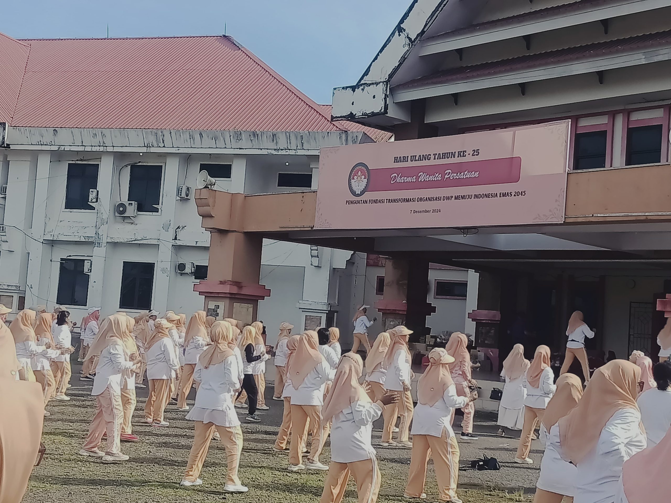 Pasangkayu,50detikcom- Dalam rangka memperingati Hari Dharma Wanita Persatuan (DWP) Kabupaten Pasangkayu yang ke-25, anggota DWP Kabupaten Pasangkayu melaksanakan senam sehat di halaman Kantor Bupati pada Jumat (6/12/2024) pagi.
