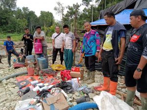 Barang bukti perlengkapan lainnya milik para penambang liar yang berhasil diamankan tim gabungan