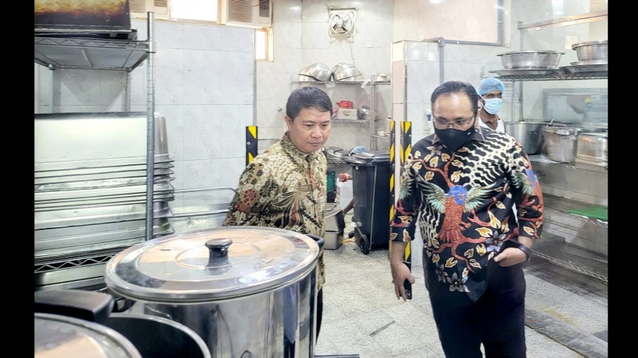 Peninjauan dilakukan Menag dan tim, juga untuk memastikan sanitasi dapur dalam keadaan bersih. Proses memasak juga menggunakan peralatan yang sesuai dengan standar kesehatan, termasuk ruang penyimpanan bersih dan bahan yang digunakan juga yang terbaik.