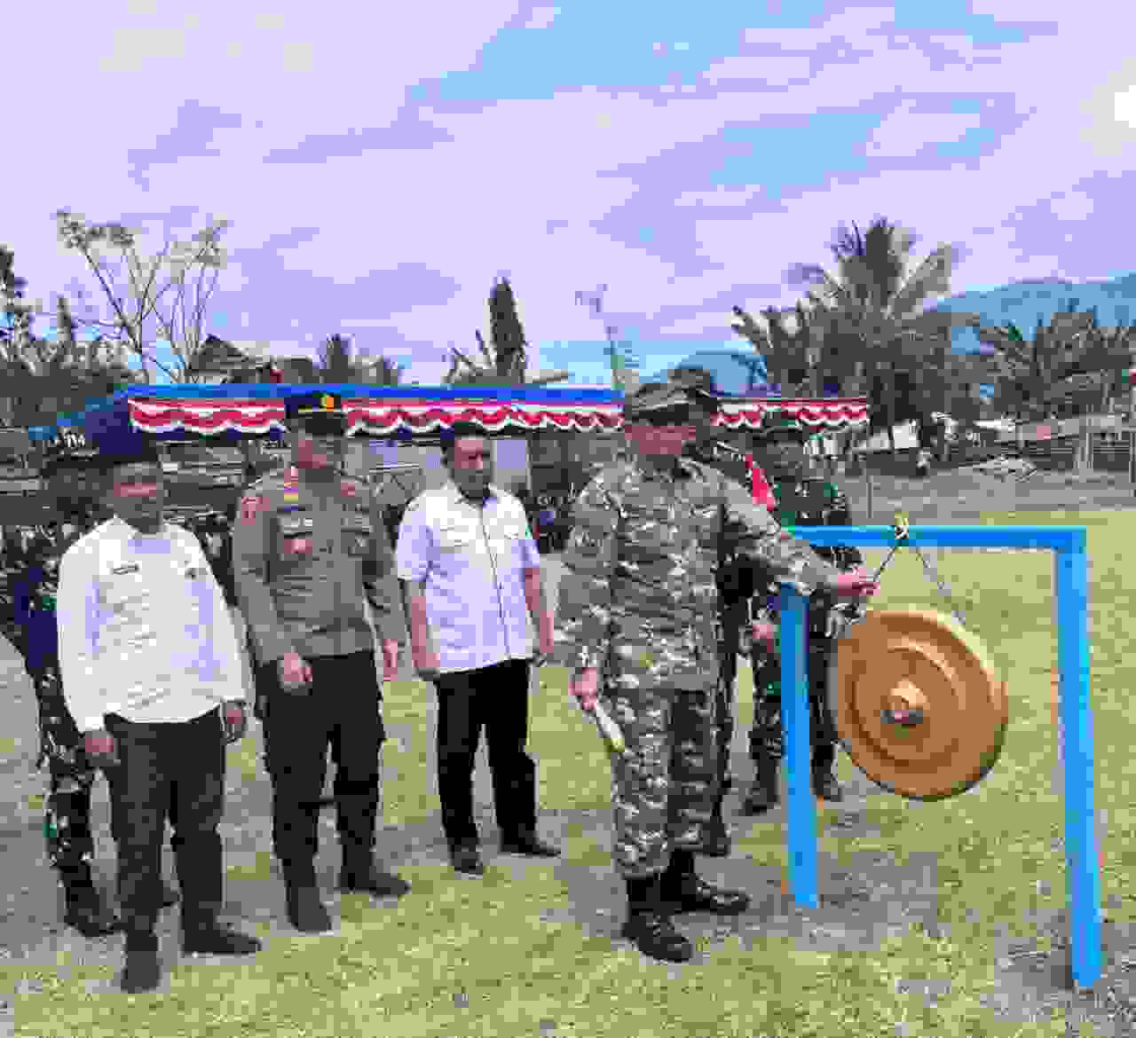 Pembukaan Kegiatan TMMD Ke-126 ini, di buka secara resmi oleh Wakil Bupati Banggai dengan di tandainya pemukulan gonk.