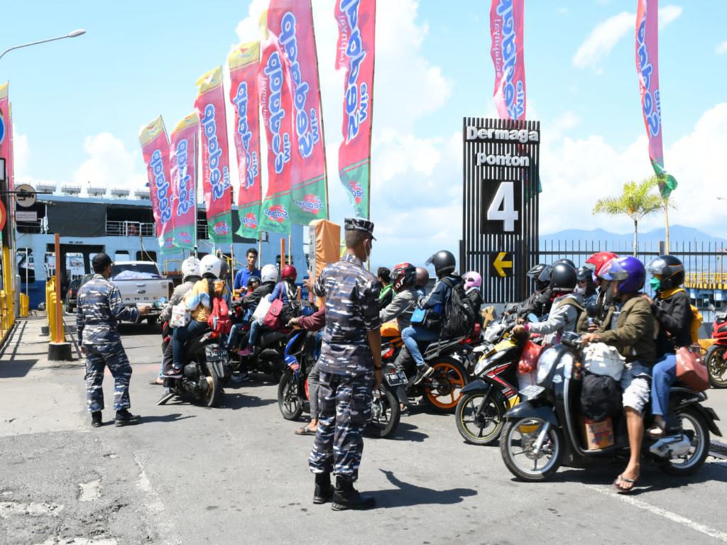 Para prajurit TNI AL yang dikerahkan disekitar pelabuhan melaksanakan pengamanan dan membantu pemeriksaan kelengkapan surat-surat pemudik yang hendak menyeberang. Hal ini bertujuan agar membantu mempercepat proses mobilisasi para pemudik sehingga tidak terjadi penumpukan kendaraan maupun penumpang di pelabuhan.