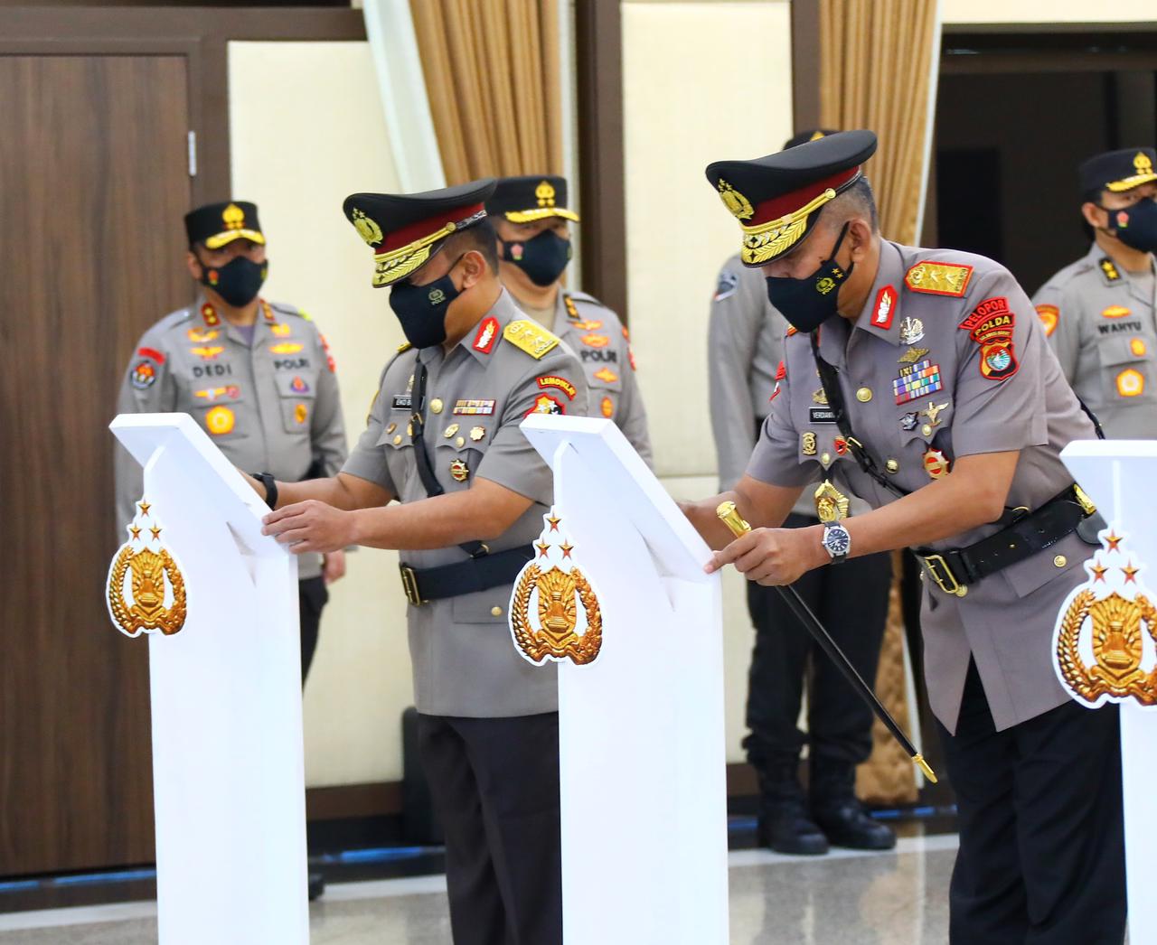 Kapolri Jenderal Listyo Sigit Prabowo melantik dan mengambil sumpah jabatan Verdianto sebagai Kapolda Sulbar, di Aula Rupatama Mabes Polri, Jumat (22/04/22).