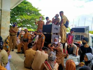 Bangkep50detik.com-Ratusan Aparat Sipil Negara (ASN) di Banggai Kepulauan Sulawesi Tengah, menggelar aksi damai di Kantor Bupati dan Kantor Dewan setempat, Senin (29/3/2021). Gerakan aksi itu lebih disebabkan oleh molornya penetapan Anggaran Pendapatan Belanja Daerah tahun anggaran 2021.
