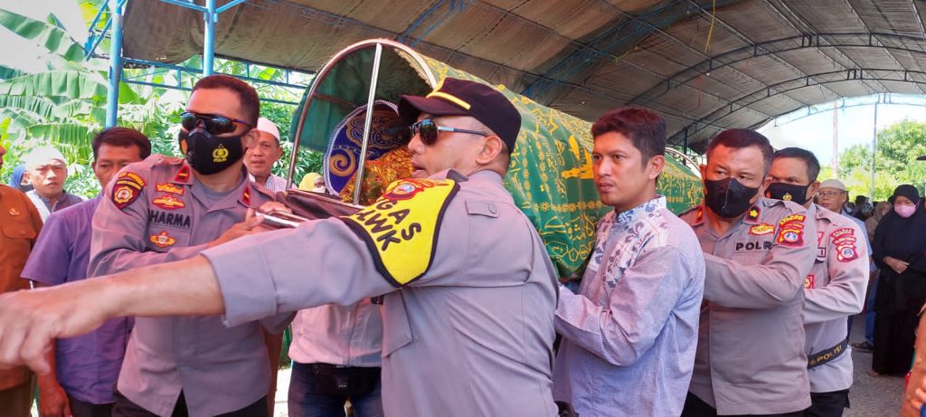 Luwuk, 50detik.com– Wakapolres Banggai Kompol Margiyanta SH, bersama perwira Polres Banggai memikul keranda jenazah warganya ke pemakaman, Senin (23/5/2022).